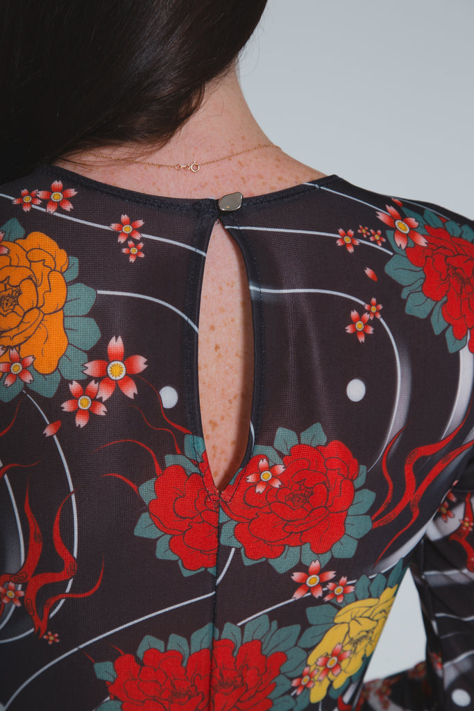 Feel your strength, freedom and exclusivity in the PEONIES swimsuit. The power of the dragon is subdued by the beauty of the peony, a symbol of wisdom and wealth. Bright peony flowers will ignite your inner fire like nothing better.